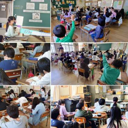 牛乳や海藻、大豆、小魚など、カルシウムを多く含む食品について知り、これからの生活においてこれらを進んで食べる習慣を身につけることを目標に、2年3組の教室で授業を行いました。