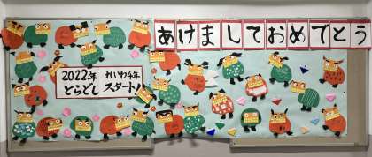 あけましておめでとうございます。みんなで作った獅子舞です。表情豊かで、楽しい壁面になりました。今年も、元気にすごしましょう。