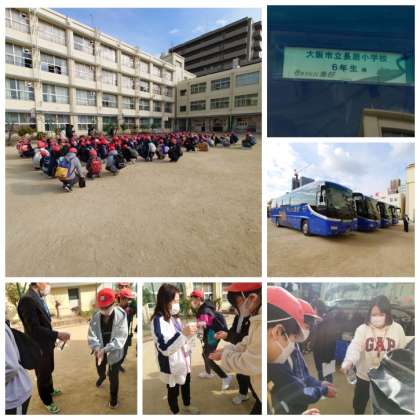 登校時の健康観察を始め、乗車時の消毒の徹底を行い、クラスごとの貸し切りバスで現地と学校を往復します。