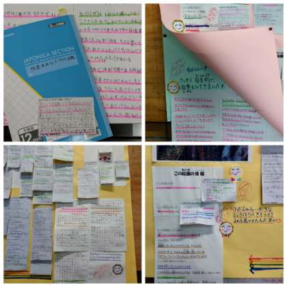 回を重ねていくうちに,学年問わず興味関心から探求しようとする児童が増え、調べたことを次々と掲示したり、中には専用のノートを用意して記録していこうとしたりする児童が見られるようになりました。