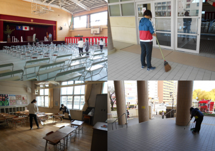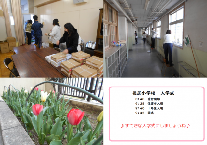 教職員が力を合わせて、明日の入学式準備をしました。1年生に喜んでもらえるように、ピカピカにしました。