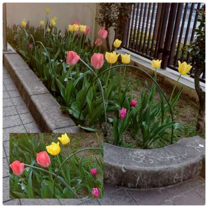 昨日今日は一気に気温も上がり、いろいろな色のチューリップの花が可愛く咲いています。