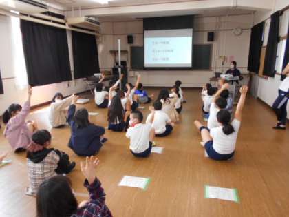 保健指導「脳を休めよう」というお話でした。「小学生は8〜9時間寝るのが良いよ。赤ちゃんは見るもの聞くことすべてが新しい情報だから、もっと長い時間寝て脳を休めているんだよ。」に、へ〜!とうなづいていました。