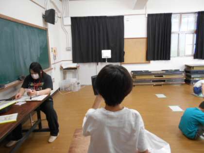今週は眼科検診をしています。写真は4年生。見えた方向を指で指し示さず、「上。右。」と言葉で養護教諭に伝えていました。