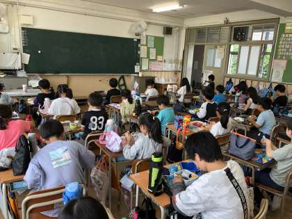 なので、今日は教室でお弁当!!とってもおいしかったようで、ニコニコの3年生です!