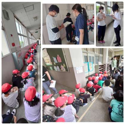 本日は、「引き渡し訓練」の前に2限目の途中から「地震」と「津波警報」を想定した避難訓練をしました。