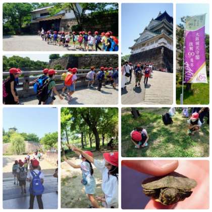 亀がいたり、トンボがいたりと自然がいっぱいの中、大阪城につきました。