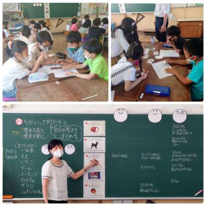 児童は自分の考えとの違いを理由を述べながら発表し、互いの考えを確認しあっていました。