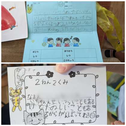 1年生の教室に行き、ペアグループを組みました。初めて出会う子も多く、ドキドキしていました。カードを渡して「よろしくね♪」と友だちになれました。これから、たんけんカードを手に、学校のあちらこちらに出かけていきます!