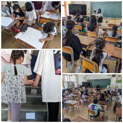 1年生と6年生、2年生と5年生、3年生と4年生がペア学年です。今日の3時間目は、「長居フェスティバルの準備をしよう」をめあてに、お店について考えました。長居フェスティバルは、2年間実施できていなかったので、1,2,3年生は、長居フェスティバルは初めての行事です。6年生は1年生を教室まで迎えに行き、優しく手を握って、教室まで連れて行きました。