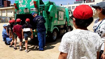 24日(金)の2〜3時間目に4年生がゴミの処理と活用について学習しました。環境局による出前授業で、本物のパッカー車がゴミをどのように集めているのか、体験を通して学ぶことができました。実際にパッカー車に集めてきたペットボトルを投入すると…「迫力があった!」「すぐに無くなってびっくりした」などの感想があげられました。