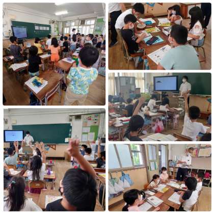 児童は、音符や休符について学んだあと、4泊のリズムを考え、それを友だちに伝えたり、友だちが考えたリズムを教えてもらったりしながら学びを深めていきました。