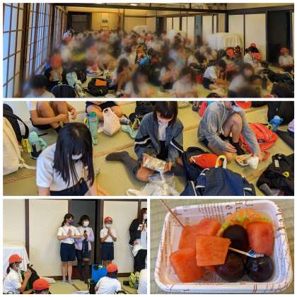 お弁当タイム♪ お腹すいた〜〜の声。いただきます! みんな静かに食べています。