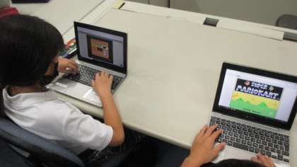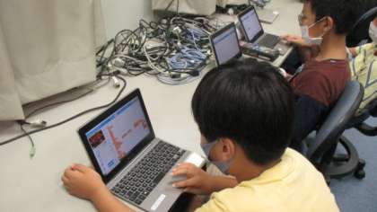 一人一台タブレットを使って、プログラミングを中心に活動しています。ゲームを作ったり、絵を動かしたりと、どんどんできることが増えています。パソコンを巧みに使いこなそう!