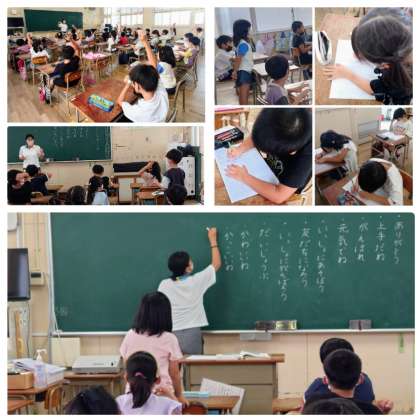 12日 月曜日の5時限目は、2年2組の教室で「うれしくなることばをあつめよう」の単元の1時間目を行いました。