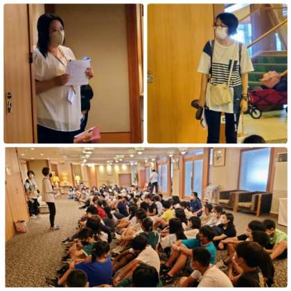 避難訓練で非常階段や通路を確認した後は、入浴タイムと買い物タイムの2つに分かれて過ごします。