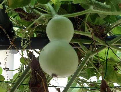 ※くきや葉は育ったものの、なかなか実が大きくならなかったヒョウタンでしたが、ようやく大きくなってきました。