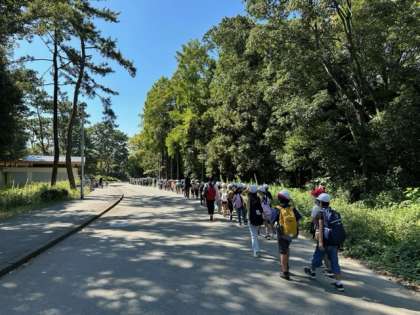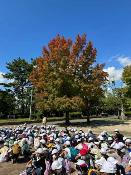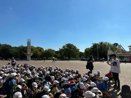 お弁当を食べる場所に着きました。時間が少し早いので、荷物を置いてみんなで遊びます。