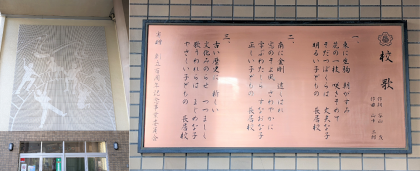 長居小学校は、伝統的に音楽を大切にしてきた学校です。それは、正面玄関の外壁(上部)や、校歌の歌詞(3番)にも表れています。音楽は、心を豊かにしてくれます。バランス、リズムの調和は、健やかな成長につながります。今後も外壁や校歌に込められた願いをかなえられる長居小学校であるよう、教職員全員で進めてまいります。