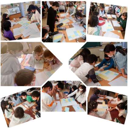 児童は事前に調べた学習の記録をもとに、くらしの中にどのような「和」と「洋」があるのかを考え、その理由を述べ合い、学級全体で考えていました。この単元の最後には、調べたことをまとめる学習へと進んでいきます。どんな説明文に仕上がるのか、とても楽しみです。