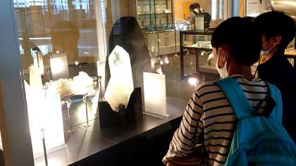 サイエンスショーでは、「ポリマー」のお話を聞きました。実験も多くて、プラスチックが水を閉じ込めるしくみがよく分かりました。このときも、4年生からは「あ、水の分子だ!」「見たことある!」という声があがり、その反応に学芸員さんのほうが「え? みんな水の分子を知ってるの!?」と、驚いておられました。