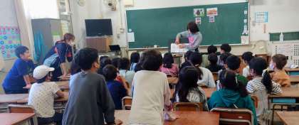 本校の英語教育推進担当が、今週から2年生に英語の絵本の読み聞かせや、英語を取り入れたゲームで、外国語教育を行います。