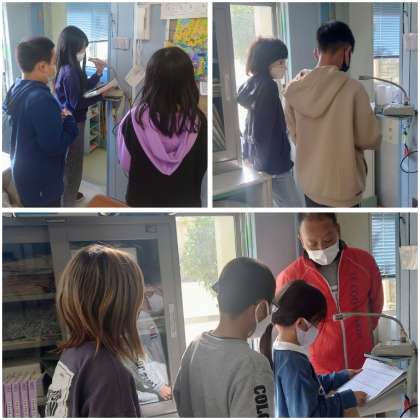 今日は最初に給食委員の児童が、先週のクイズの回答と新しいクイズを紹介しました。