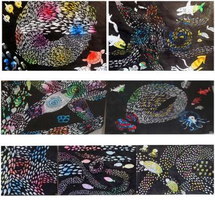6年生の教室では、児童の力作を掲示しています。ご来校いただける先生はぜひご鑑賞ください。