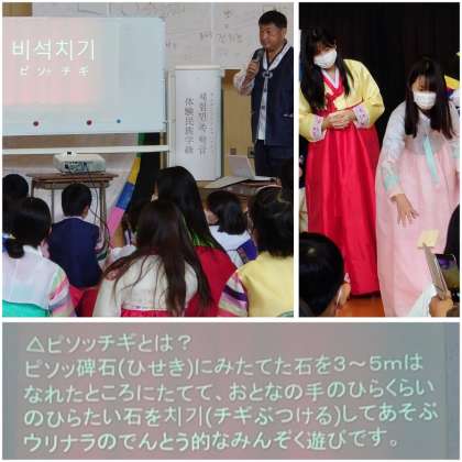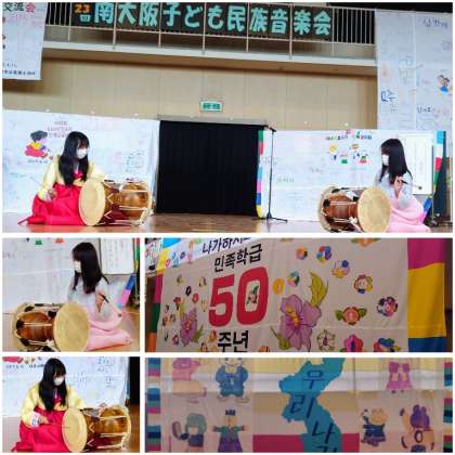 11月19日(土)、南大阪の民族の仲間が集まり、大切な時間を共に過ごすことができる「民族の音楽会」「出会いの音楽会」、そしてみんながつながり「하나(一つ)になる음악회(音楽会)」である南大阪子ども民族音楽会が3年ぶりに南津守小学校で開かれました。本校の児童も参加し、交流を楽しみました。