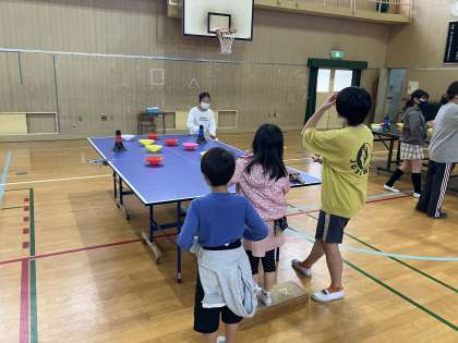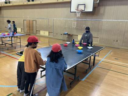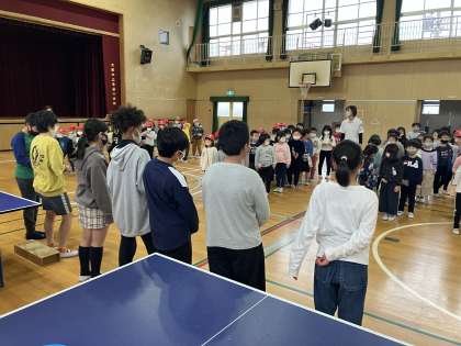 12月5日から12月12日までの6日間はスポーツ週間です。学年ごとに、運動委員会の児童が考えた運動遊びを講堂でします。12月5日は1年生が楽しく活動しました。