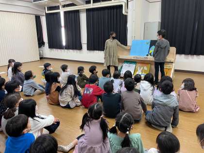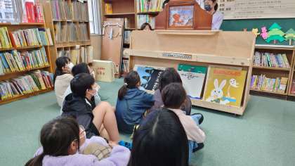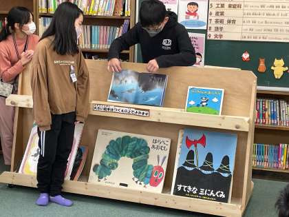 昼休みの図書館開放で図書委員会の児童が読み聞かせを行いました。