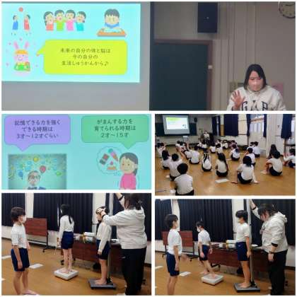 「未来の自分の体と脳は、今の自分の生活習慣から」 ということを強調し、児童一人ひとりが自分の生活について振り返りました。