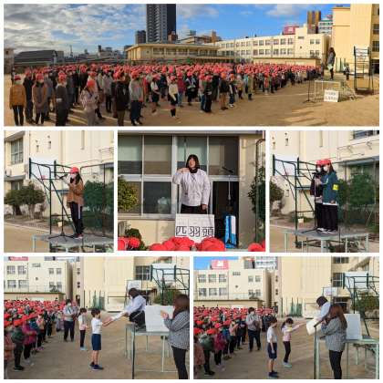 校長先生からは、干支にちなんでうさぎの話。「うさぎ年の『ウ』は、『卯』『兎』どちらの漢字を使うでしょう?」など3つのクイズに、盛り上がりました!