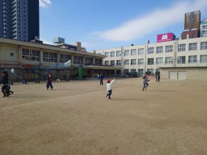 良いお天気の中、風もよく吹き凧もよくあがり、笑顔で走り回る子どもたちの姿が見られました。