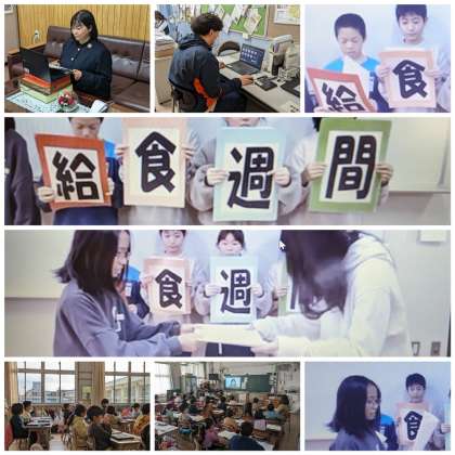 給食委員会からは「給食週間について」のお知らせでした。日頃の感謝の気持ちを感謝状にし、調理員さんに渡す動画を流しました。給食週間の由来やマナーを守って食べることの大切さを発表しました。