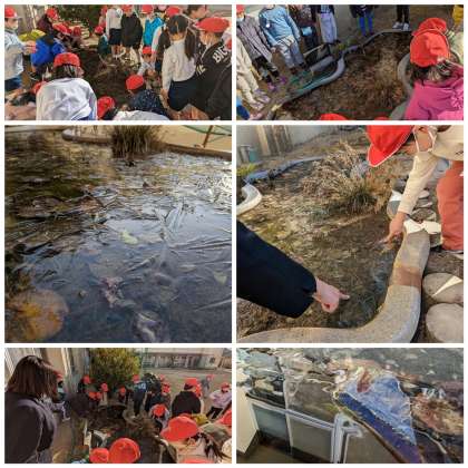 とても寒い朝でした。職員室前の池に氷が張っていました。