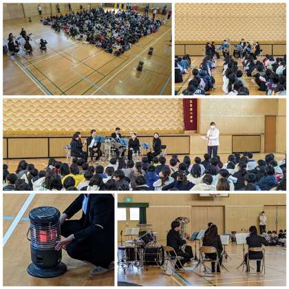 文化庁参事官付学校芸術教室「文化芸術による子供育成推進事業」として、オルカミュージックの皆さんにお越しいただき、管楽器の音楽鑑賞会をしました。枚方市を拠点に活動されているプロの演奏家の皆さんの音色は、とてもきれいでした。バッハ、ヘンデルと、作曲家についてのお話も教えていただきました。大変寒い日でしたので、演奏される方は、手を温めながらの鑑賞会でした。