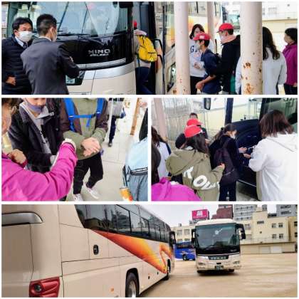 9時48分3組のバスの出発です。