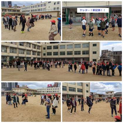 体育の時間の記録を更新できたクラスは、ヤッター!と大喜びでした。