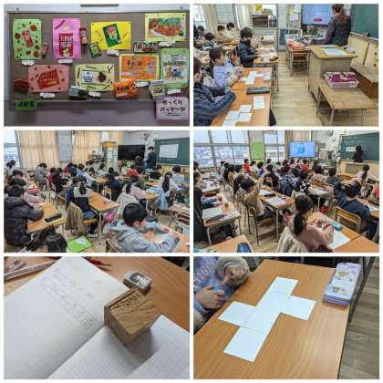 実際に面をつなぎ合わせ、展開図の特徴を学習しました。デジタル教科書も活用し、頭の中で立体をイメージできるように学習しました。