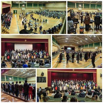 保護者へ感謝の思い、これからの自分への期待、将来の夢…一人ずつ、心を込めたメッセージを届けました。合唱と合奏は、6年間の成長の証として、全員で奏でました。