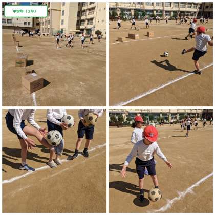 サッカーは冬の季語でもありますが、小学校の体育科では、寒い季節にボールを蹴る運動を取り入れています。冬は身体が寒く縮こまることが多いので、子どもたちが意欲的に体を動かしたくなる運動を取り入れています。