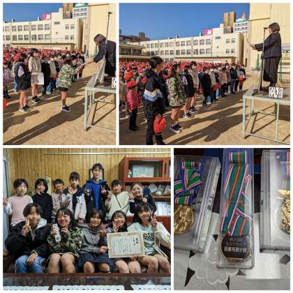 ミニバスケットボール女子の表彰(第3位)をしました。女子もチーム力が上がってきました。メダルをもらえた児童もいました。長居っ子はすごいです!