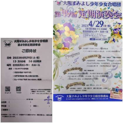 4月29日(土・祝)に「大阪すみよし少年少女合唱団」の第49回 定期演奏会が開かれます。