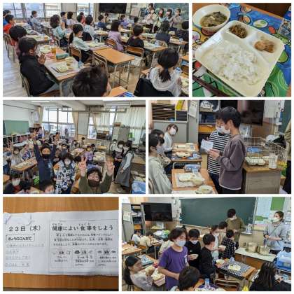 4年生の教室では、今日の献立や給食クイズをていねいに紹介していました。手を合わせて、「いただきます!」も元気にあいさつできました。おかわりほしい!という子も多く、いつも食缶はからっぽになります。たくさん食べて、元気いっぱいな5年生になりましょう!
