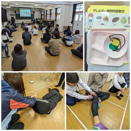 栄養教諭からは、個別対応給食の注意点とお弁当を持参する児童の実態等について共通理解を図られました。養護教諭からは、アナフィラキシーを起こした時の緊急処置について研修がありました。どちらも命に関わる大切な研修です。担当する児童がいる・いないに関わらず、全教員が適切に対応できるよう、気を引き締めて明日からの給食に向かいます。