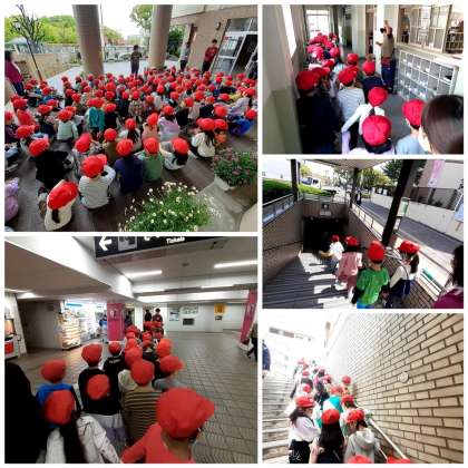 毎日登下校で使う道で、たくさんの人が行き交うので、長居小学校は「正しく歩こう」「人の迷惑にならないように歩こう」と指導しています。春の遠足も長居駅を利用します。地下道の約束を確認しました。