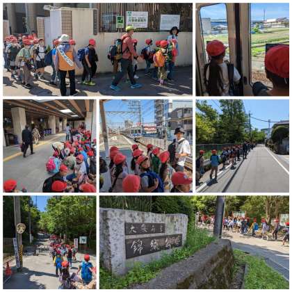 金剛駅から、早くもお腹すいた〜の声。しかし、前の友だちについて歩みを止めない4年生です!
