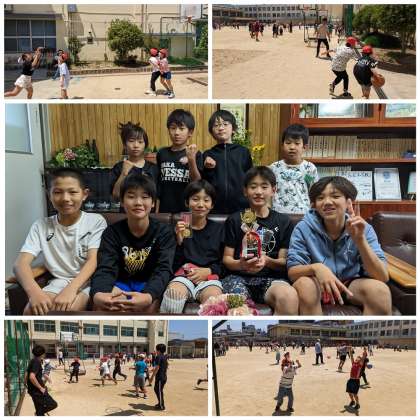 運動場では、先生も一緒に、5つすべてのリングに向かってバスケットボールを楽しんでいました。暑い日なので、汗をいっぱいかいたことでしょう。お茶しっかり飲んで、午後の学習も頑張りましょう!