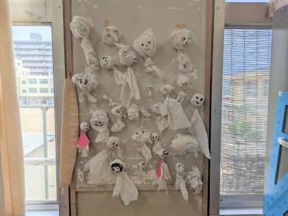 2組の教室には、子どもたちの思いがつまった「てるてるぼうず」が掲示されていました。30日は行けますように!